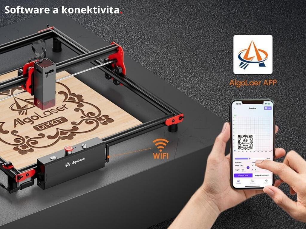 Po sestavení konstrukce (15 - 20min) se stroj ovládá přes klasický desktop nejlépe s Windows nebo Mac. Kompatibilní je s běžně dostupnými software, například Laser GRBL, nebo LightBurn případně přes mobilní aplikaci (iOS i Android), odkazy na software jsou samozřejmě i součástí balení.