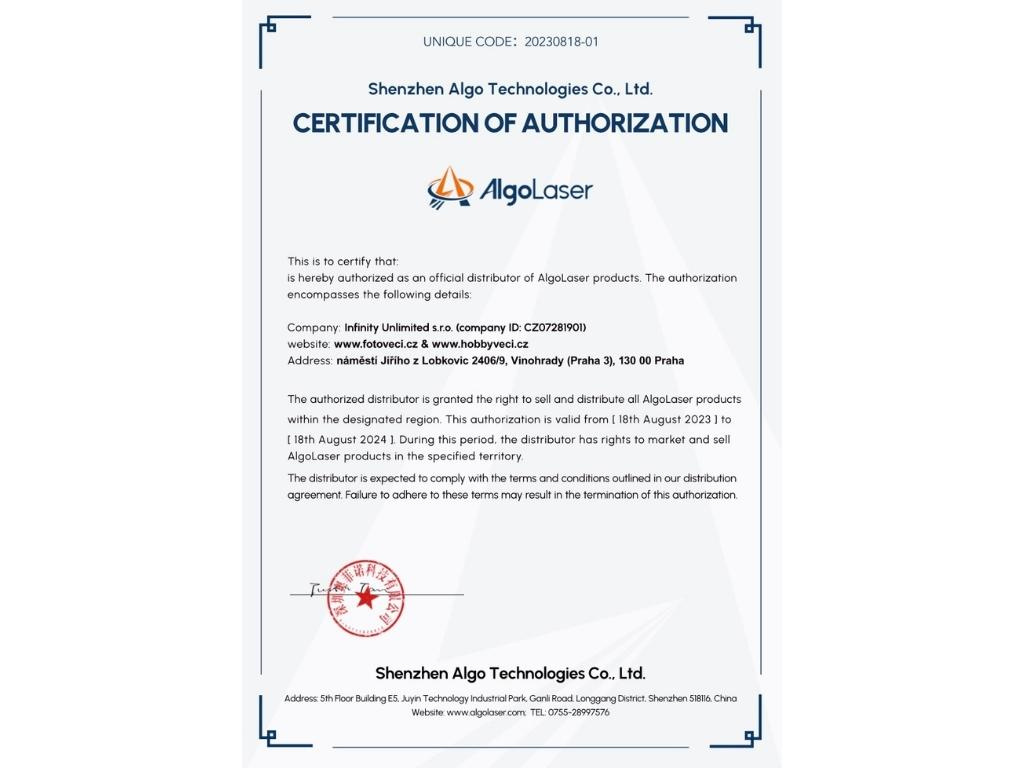- Fotoveci/Hobbyvěci jsou oficiálním distributorem značky AlgoLaser, poskytujeme záruční i pozáruční servis, poradenství i školení