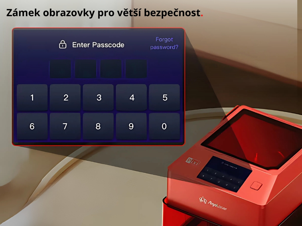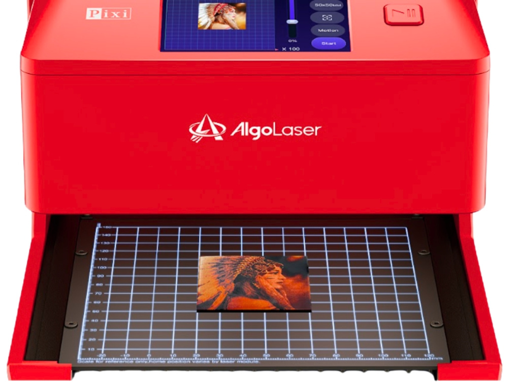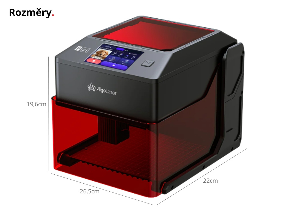 Algolaser Pixi je kompaktní, bezpečná a extrémně intuitivní laserová gravírka s krytem, ideální pro malé firmy, DIY tvůrce i úplné začátečníky. Díky integrovanému displeji a systému AlgoOS nepotřebujete počítač, stačí zapnout a tvořit!