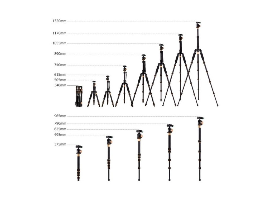 Profesionální fotografický stativ prověřené značky Andoer dosahuje do výšky až 132 cm. Jeho velkou výhodou je nejen pořádná stabilita. Tripod je vyrobený z vysoce kvalitní hliníkové slitiny a váží pouze 1,43 kg. Je lehký, ale odolný a jeho nosnost je až 5 kg.