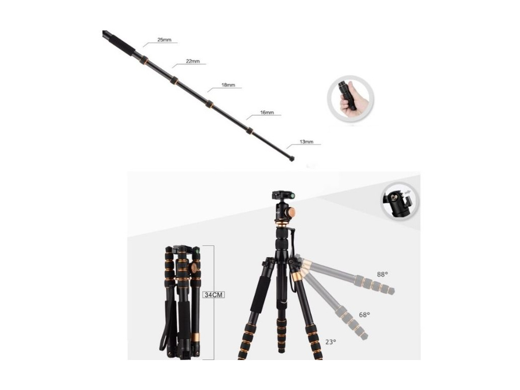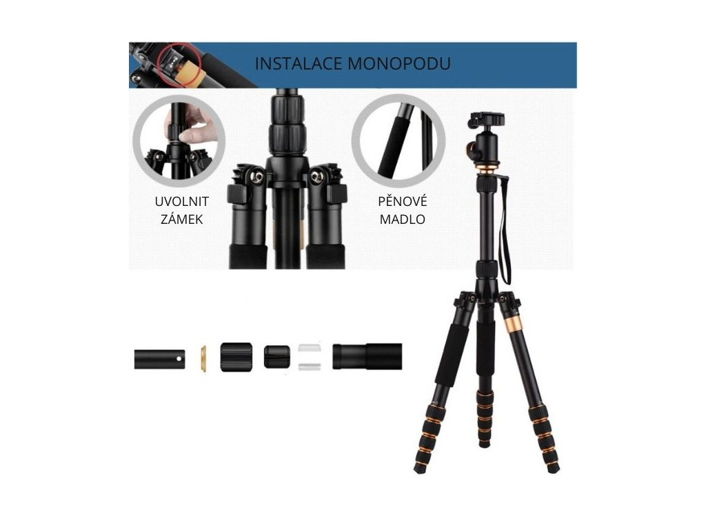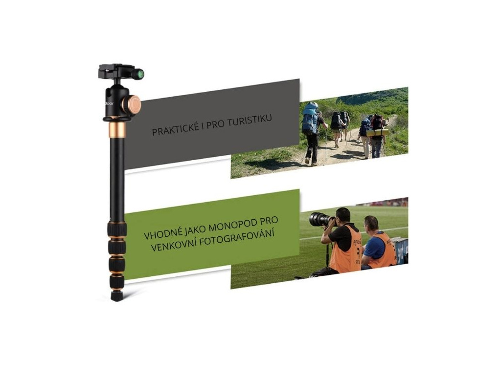 Je vhodný i na cesty a turistiku, jelikož lze snadno přeměnit na monopod, zároveň lze nohy stativu nastavit v několika úrovních úhlu otevření, aby se stabilizovaly na různém terénu a sklonu. Pro cesty jistě oceníte i přenosné polstrované pouzdro, které je součástí balení.