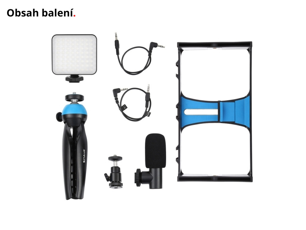 Puluz Držák na Telefon Klec, Mikrofon, Mini LED Světla, Tripod, Bluetooth spoušť Smartphone Video Rig Vlog Set