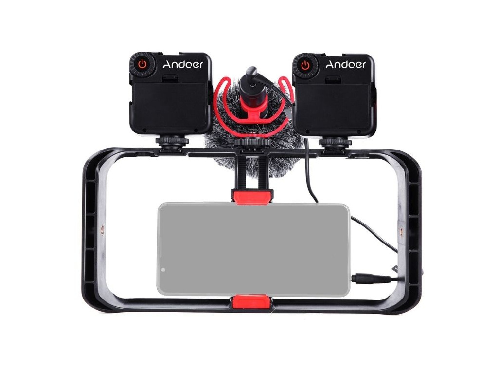 Točíte dynamické záběry na telefonu, ale nemáte obraz dostatečně stabilizovaný nebo vám k němu chybí kvalitní zvuk a upevnění světla, které rozzáří scénu? Andoer Smartphone Rig je skvělým řešením. Do bytelné plastové konstrukce vložíte telefon a na konstrukci jednoduše můžete upevnit mikrofon a mini LED panely, které jsou součástí balení. Celou konstrukci pak vezmete pevně do rukou a můžete začít se skvělými záběry.