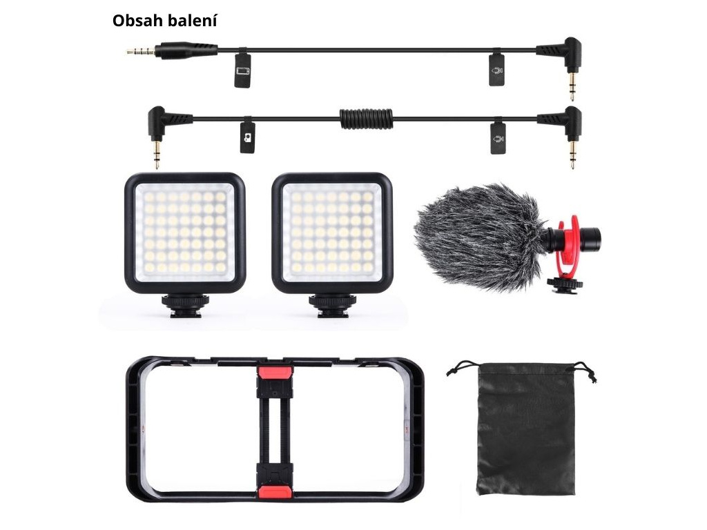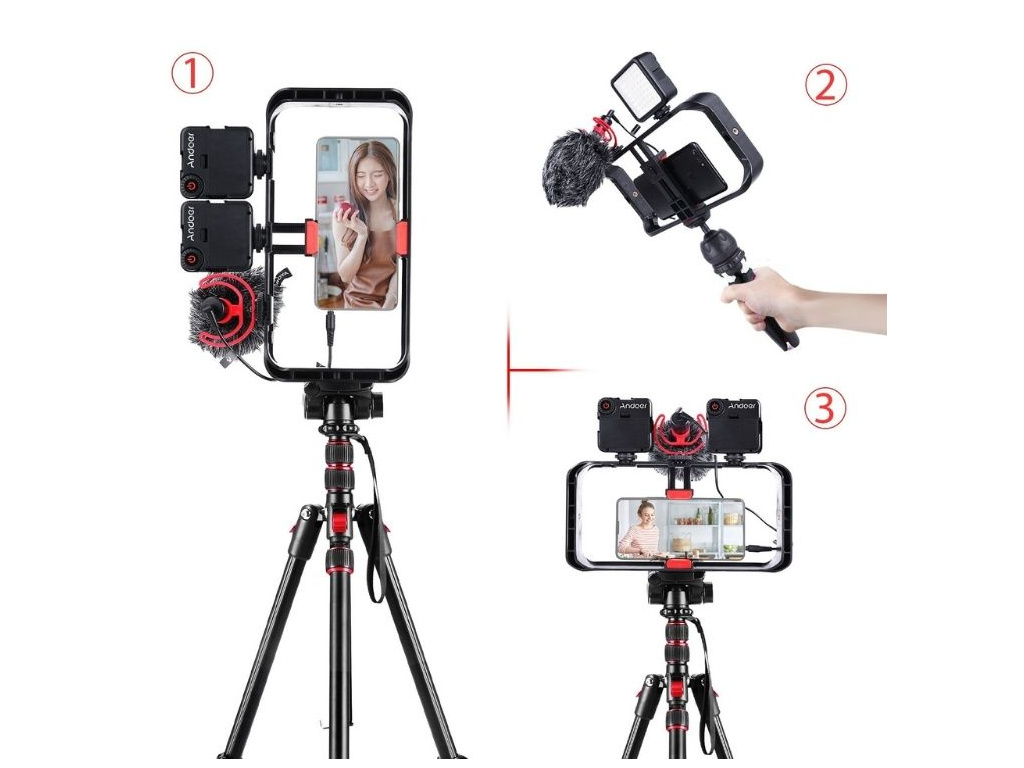 Andoer Držák na Telefon Klec + Mikrofon + Mini LED Světla Smartphone Video Rig