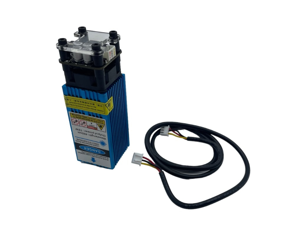 Tato laserová hlavice je bezpečnostní třídy 4 a může způsobit vážné a trvalé poškození nebo úplnou ztrátu zraku, popálení a jiné úrazy. Nikdy se nekoukejte přímo do laseru a to ani s ochrannými brýlemi. Nenechávejte se lasere pracovat děti. Odražený paprsek na vzdálenost několika metrů může způsobit slepotu. Zároveň může odraz laseru způsobit vznícení některých materiálů a hrozí tak vznik požáru. Nikdy tak nenechávejte laser bez dozoru a po použití ho vždy vypněte, nejlépe ze zdroje napájení.
