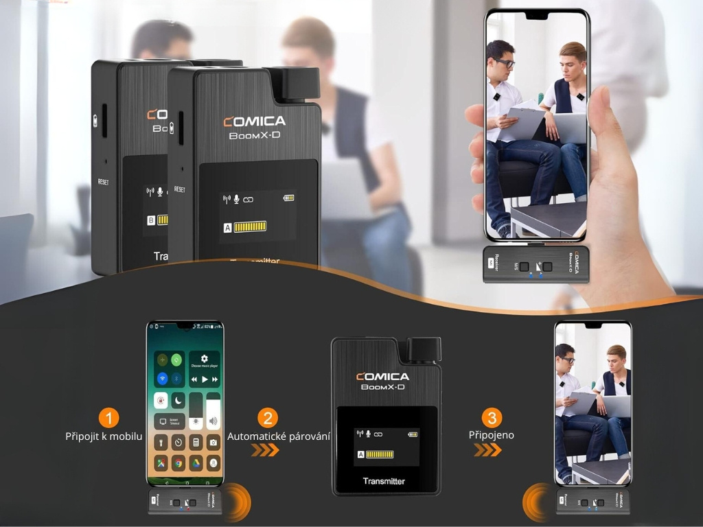 Comica obstojí u hobby uživatele i toho nejnáročnějšího profesionála. Řada Boom se vyznačuje opět perfektní kvalitou nahrávaného zvuku, až neuvěřitelnou pětihodinovou výdrží na baterce s možností superfast dobíjení a pak samozřejmě absencí kabelu:). Na výběr máte Boom D1 a Boom D2 podle počtu transmitterů (vysílačů).