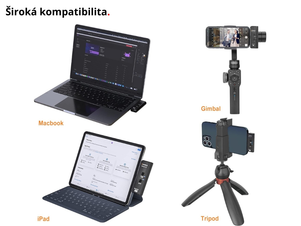 Typ Comica BoomX-D MI2 je specificky navržen pro zařízení iOS, a to díky své integrované Lightning konektivitě, což eliminuje potřebu používání kabelů. To umožňuje pevné uchycení přijímače přímo na iPhone nebo iPad.