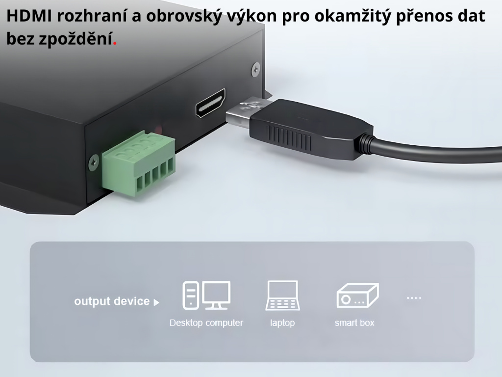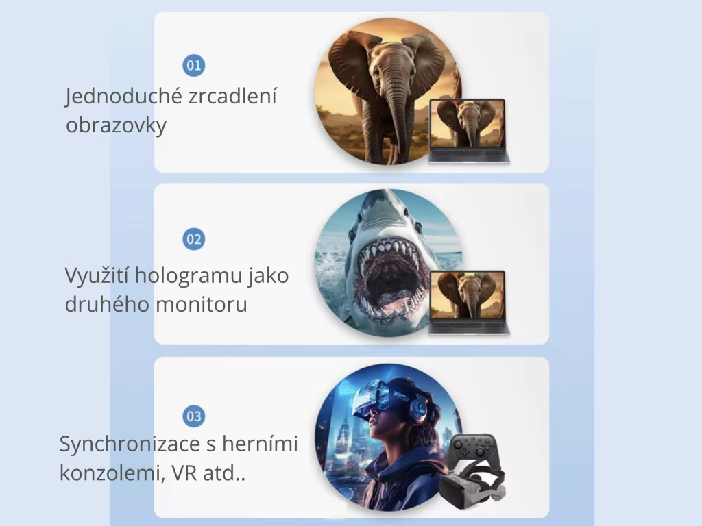 Projektor se ovládá pomocí softwaru OBS a připojuje se přes HDMI k počítači, tabletu nebo telefonu. Díky projekci v reálném čase můžete scénu snadno a okamžitě upravit podle svých potřeb.