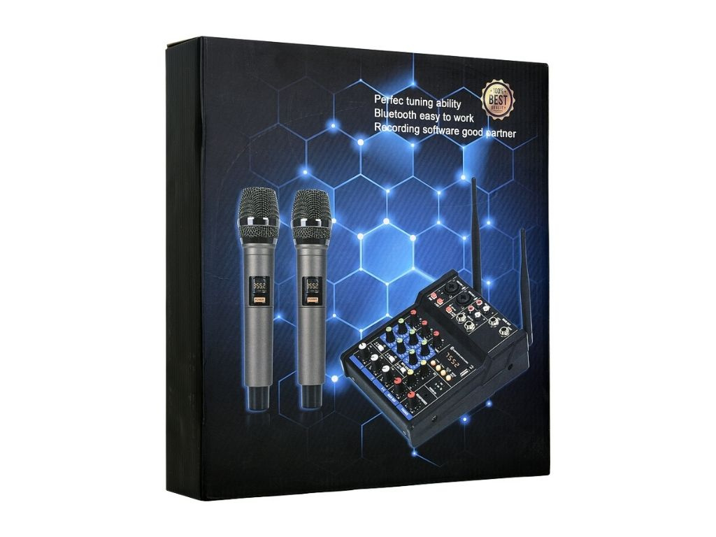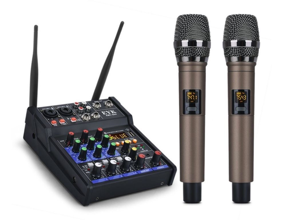 Profesionální mixážní pult s přijímačem a dvěma bezdrátovými mikrofony od prověřené značky EYK vám nabídne intuitivní ovládání a skvělé uživatelské vlastnosti. Pulty jsou vhodné pro domácí nahrávací studia, podcasty, karaoke nebo live vystoupení. Velkou výhodou je možnost napájení přímo z PC nebo powerbanky.