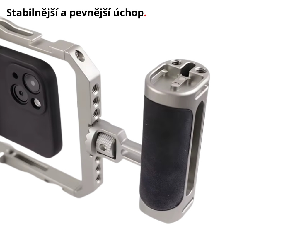 Když točíte na mobil, ale chcete výstup jako z profi techniky tohle je přesně ono. Masivní kovová konstrukce drží pevně tvar a přitom nepřidává zbytečnou váhu. Rám je navržený tak, aby poskytl maximální stabilitu při natáčení z ruky, a to jak v horizontální, tak vertikální poloze.