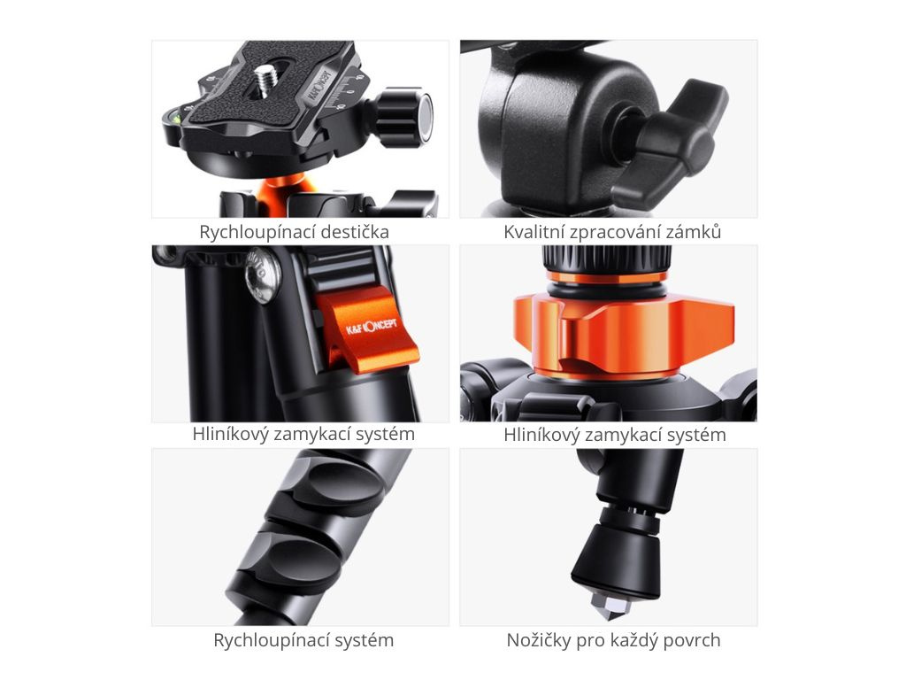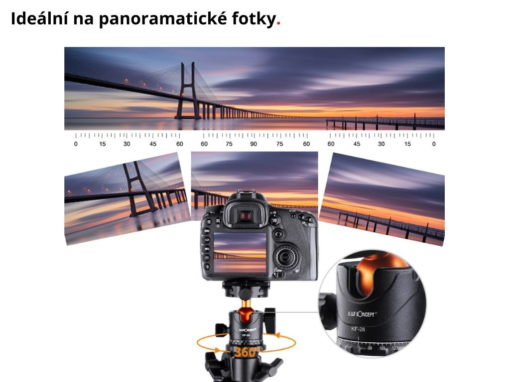 Velkou výhodou tohoto stativu je minimální výška 50cm. Součástí balení je i praktická brašna, která má popruh do ruky i přes rameno. Stativ má zabudovanou kvalitní kulovou dvouprvkovou 360° hlavu, což pomáhá pro panoramatické fotografie. Velkou výhodou jsou nohy se čtyřmi sekcemi a možnost odpojení jedné nohy. Ze stativu tak můžete mít během chvilky monopod.