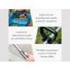Pro pohodlné sečení je součástí i pohodlná rukojeť a samozřejmostí jsou různé ochranné prvky (krytka v okolí čepele proti kamínkům, bezpečnostní pojistka proti samovolnému sepnutí). Náhradní baterii najdete v souvisejících produktech.