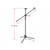 Na stojnou tyč se upevní druhá tyč (77cm dlouhá), která drží mikrofon. Tyč můžete opět nastavovat do požadované délky a natáčet do různých úhlů přesně podle vašich potřeb. Zároveň můžete stojnou tyč otáčet o 360°.