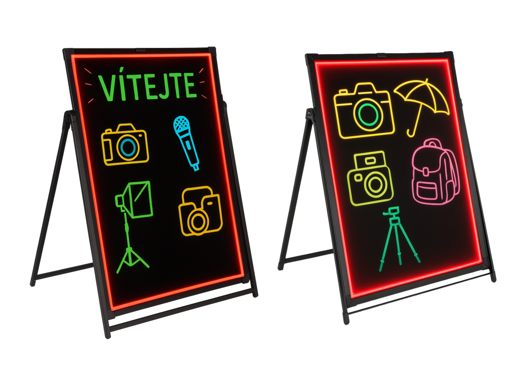 Tahle světelná psací tabule je skvělý způsob, jak přitáhnout pozornost a zároveň dát prostor vlastní kreativitě. Vyberete si barvu světla, různé efekty i intenzitu svícení, takže si vzhled snadno přizpůsobíte tomu, k čemu tabuli zrovna potřebujete. Hodí se jako menu do kavárny, jako poutač do obchodu i jako originální dekorace domů. V balení najdete také barevné popisovače, díky kterým vaše nápisy opravdu zazáří a vypadají živě na první pohled.