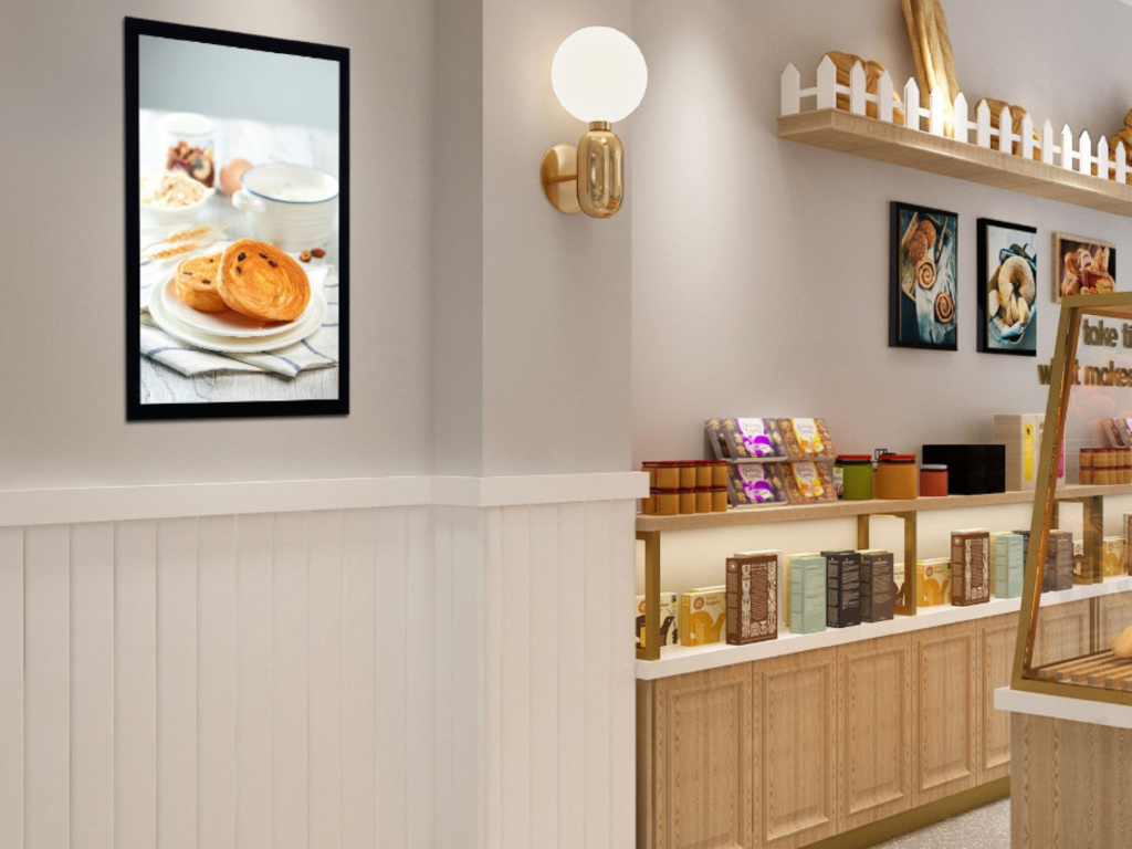 LED rám dokáže i obyčejný plakát proměnit ve vizuál, který na stěně opravdu vynikne. Má velmi tenký hliníkový profil, takže působí čistě a moderně a hodí se do obchodů, kaváren, recepcí i kanceláří. Přední akrylová deska chrání motiv před poškrábáním a zároveň pomáhá rovnoměrně rozptýlit světlo po celé ploše. Díky tomu vypadají barvy i detaily jasně a přirozeně. Rám lze používat na výšku i na šířku, což pomáhá přizpůsobit prezentaci prostoru nebo stylu konkrétního vizuálu.