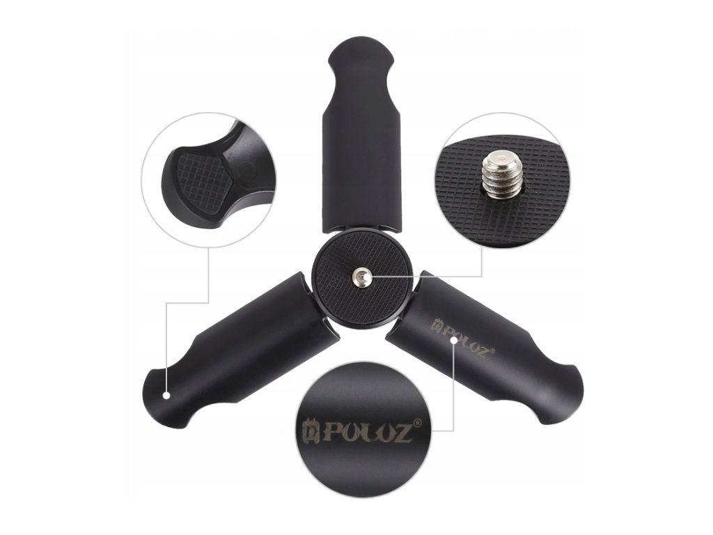 Malý stativ, který toho zvládne víc, než by se na první pohled zdálo. Je navržený tak, aby spolehlivě podpořil váš gimbal, kameru nebo telefon, ať už ho postavíte na stůl, položíte na zem nebo vezmete pevně do ruky. Profilovaný držák totiž neslouží jen jako podstavec, ale zároveň tvoří pohodlný a bezpečný úchop přímo v terénu.