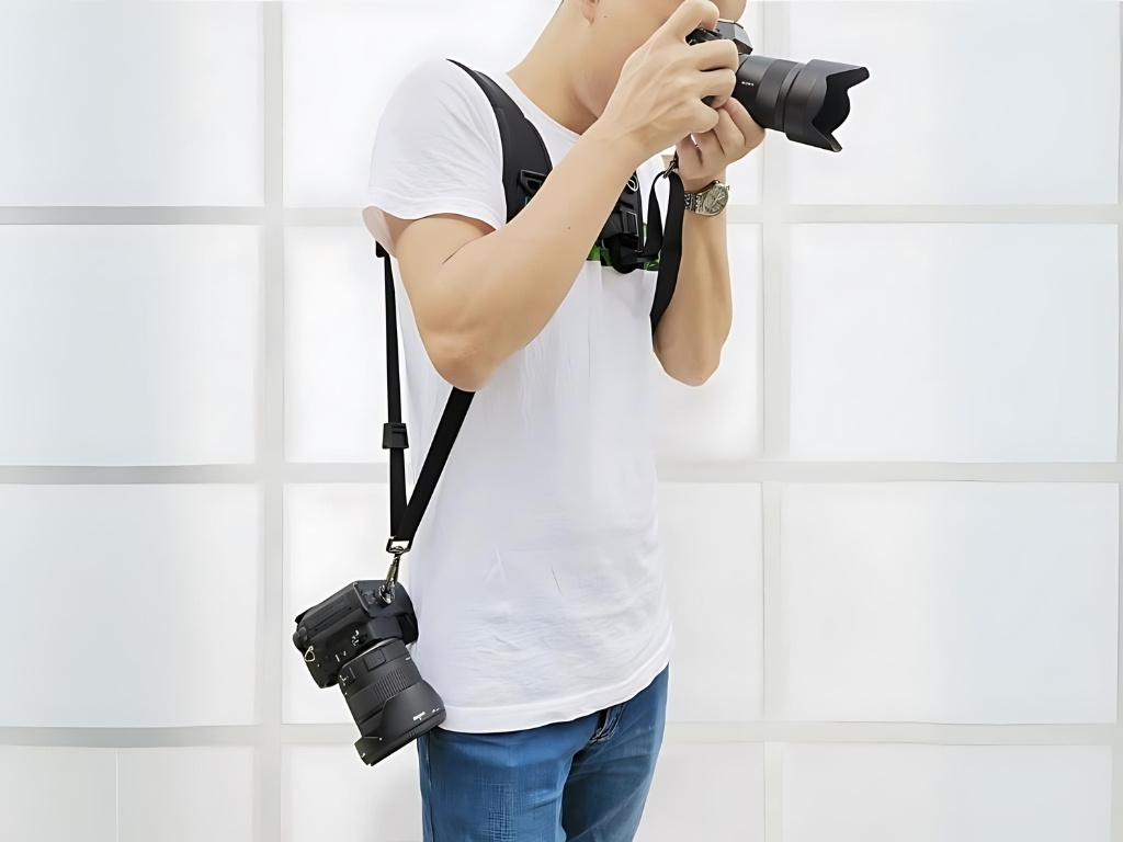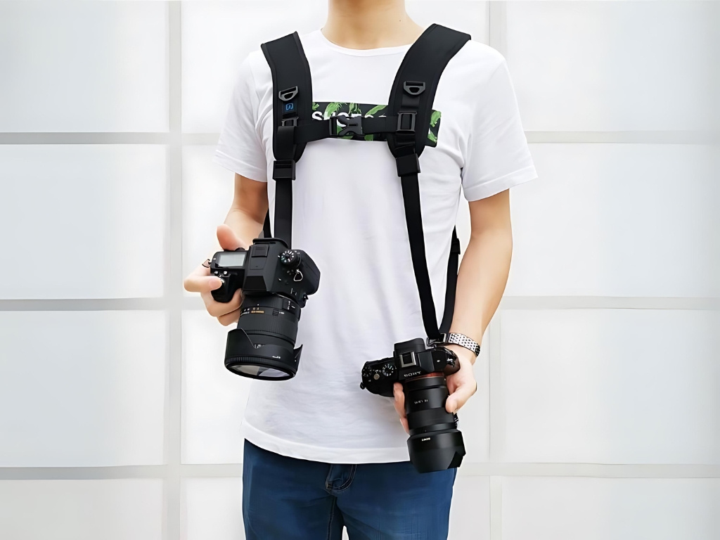 Popruh je vybaven dvěma víceúčelovými rychloupínacími destičkami s 1/4 šrouby a je kompatibilní s většinou DSLR a SLR fotoaparátů. Klidně s sebou můžete nosit hned dva foťáky najednou a střídat je dle potřeby. Každý z nich vám bude pohodlně k dispozici u jednoho boku.
