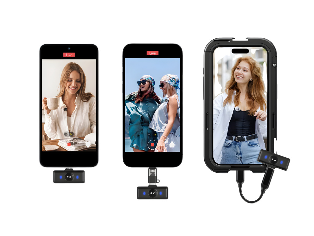 Celé ovládání je navržené tak, aby vás nezdržovalo. Přijímač jednoduše zapojíte do telefonu, tabletu nebo počítače s USB C portem a okamžitě nahráváte bez aplikací a nastavování. Mikrofon funguje s moderními iPhony, Android zařízeními i počítači a zároveň umožňuje zařízení během natáčení nabíjet. Můžete tak točit delší videa nebo streamovat bez obav z vybité baterie.