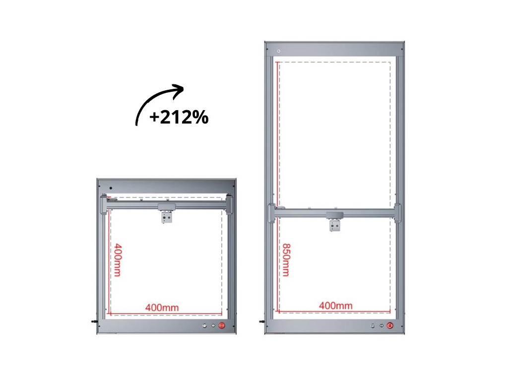 Tato sada vám zvětší akční plochu z 40x40 na 40x85, díky tomu tak můžete gravírovat buďto mnohem větší předměty nebo mnohem více předmětu naráz, které poskládáte po pracovní ploše a ušetříte tak spoustu času. Součástí balení je komplet sada se vším všudy. Nejde jen o prodloužení samotné konstrukce ale i o doprovodnou kabeláž.