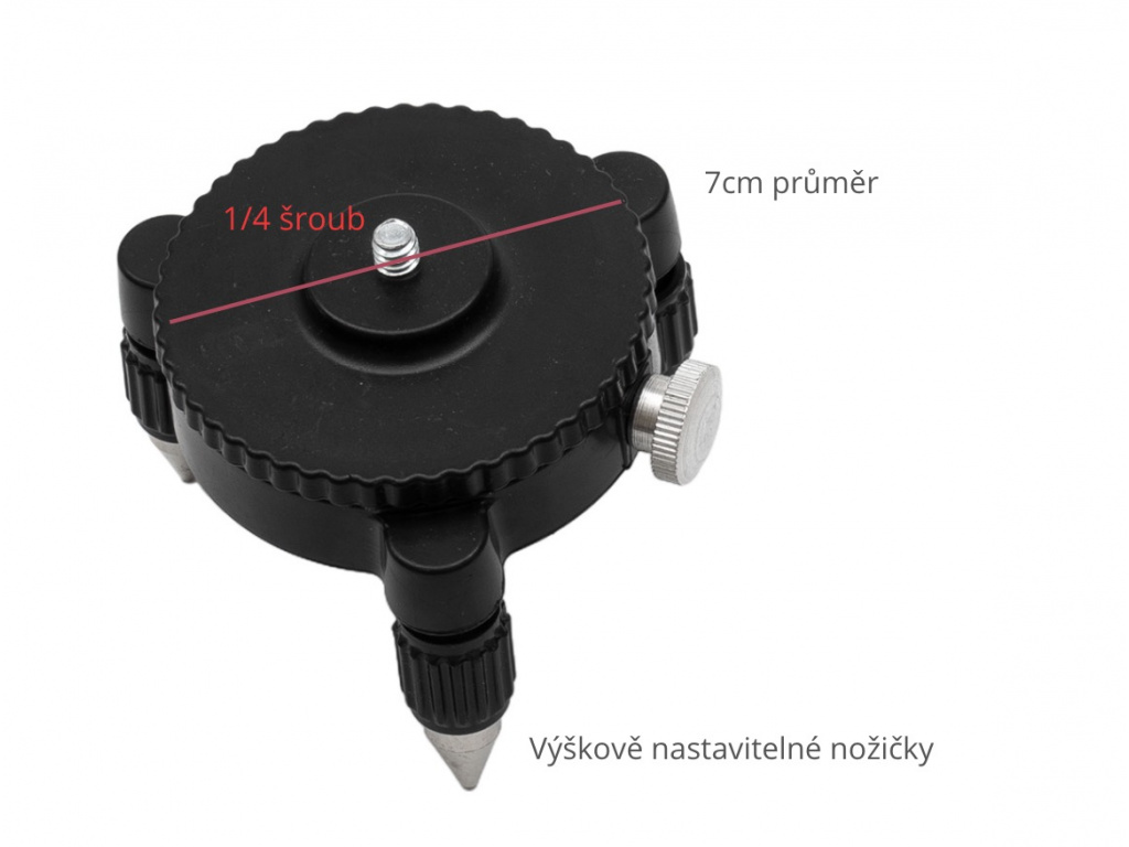 - Výška s nožičkami a 1/4 šroubem: 7,5-8,5cm