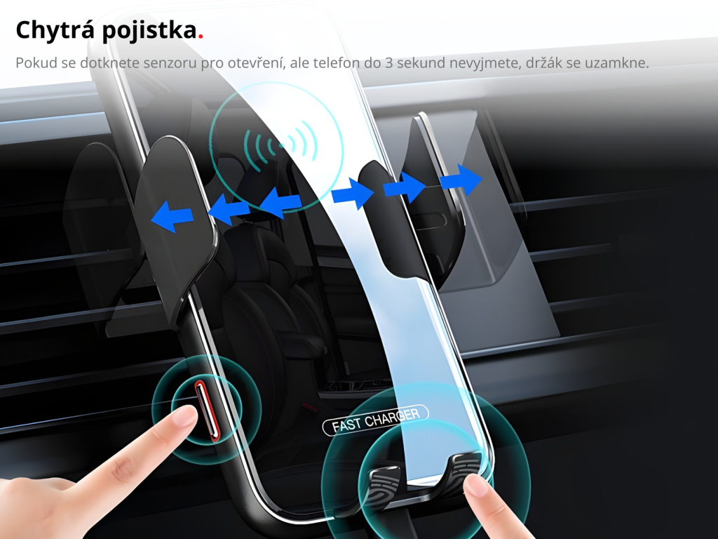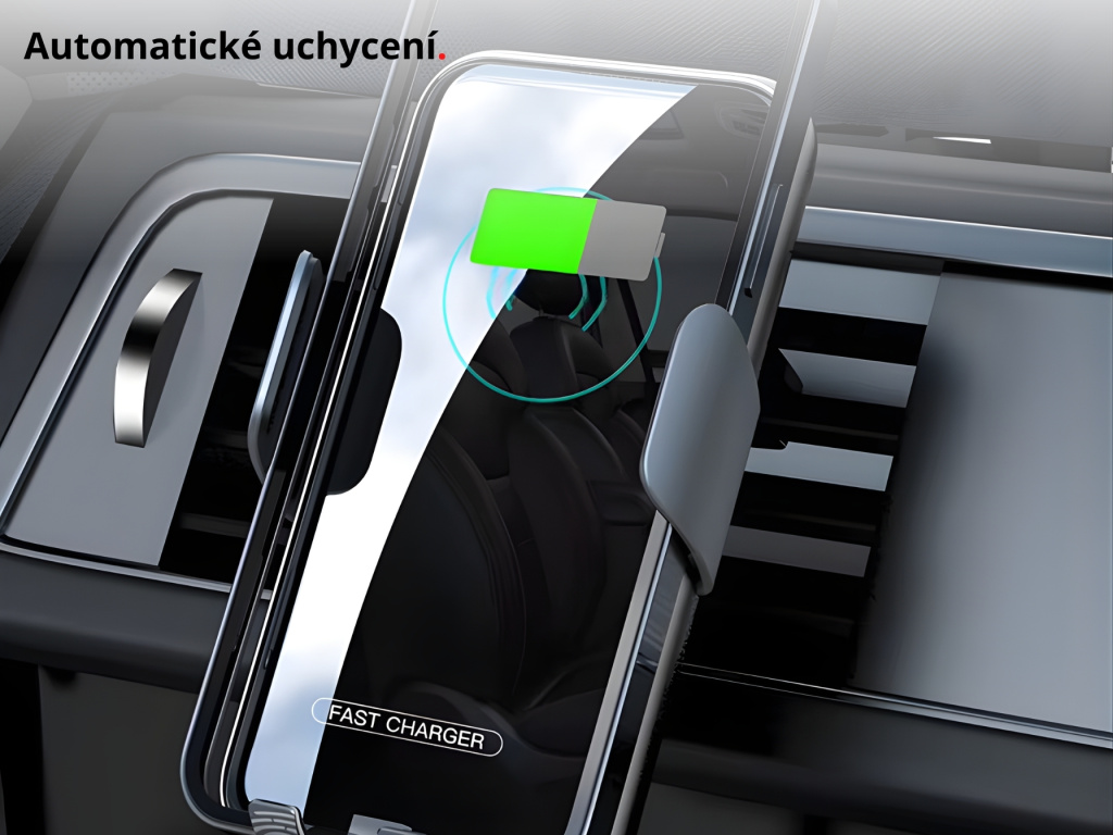 Tento elegantní hliníkový držák nabízí rychlé bezdrátové nabíjení výkonem až 15 W a inteligentní senzor, který telefon po vložení automaticky a bezpečně uzamkne. Díky 360° otočnému kloubu si snadno nastavíte ideální pozorovací úhel pro navigaci na výšku i na šířku.