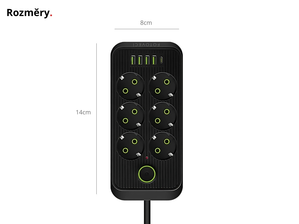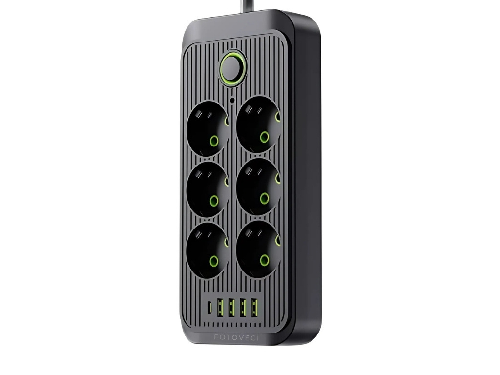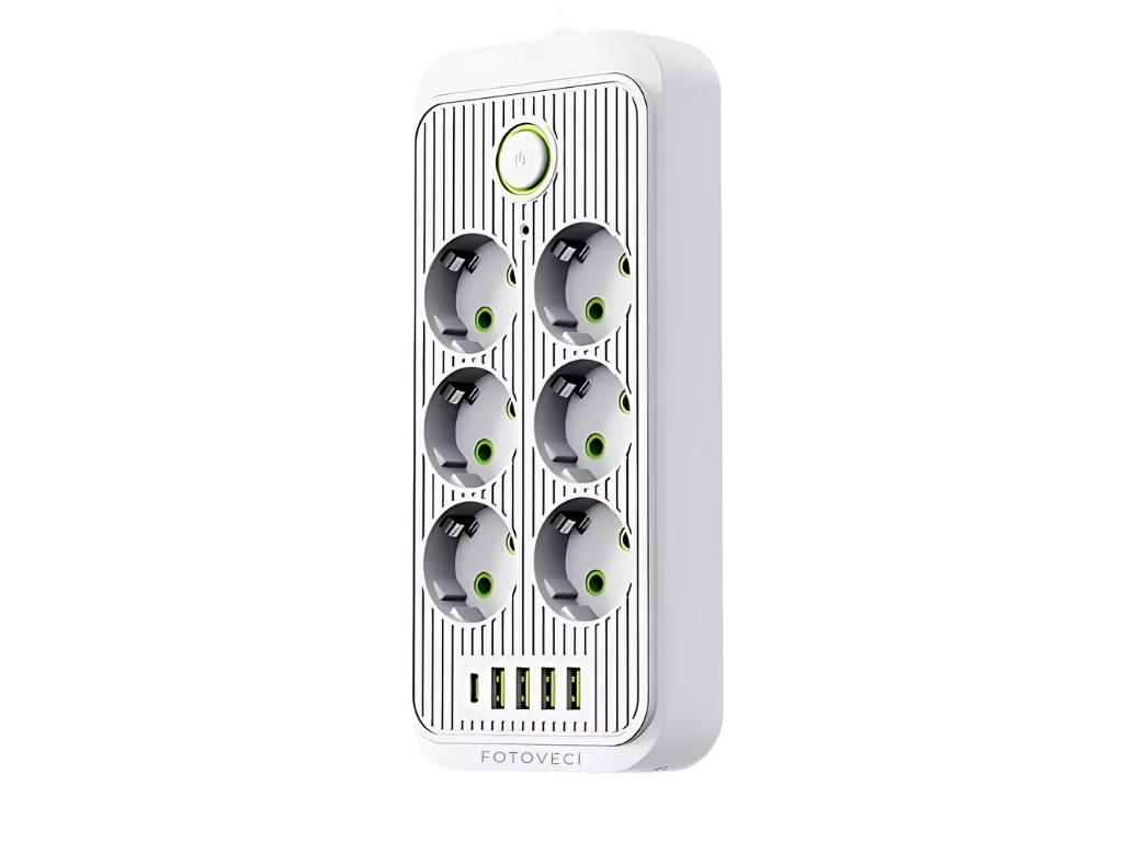 Tento prodlužovací kabel je praktickým a spolehlivým pomocníkem pro každé domácí i profesionální studio. Nabízí hned šest klasických zásuvek, čtyři USB-A výstupy a jeden USB-C výstup, takže můžete současně napájet foto techniku, světla, nabíječky i mobilní zařízení. Díky integrovanému vypínači máte vše pod kontrolou. Celé studio můžete zapnout nebo vypnout jediným stisknutím, bez nutnosti vytahovat kabel ze zásuvky.