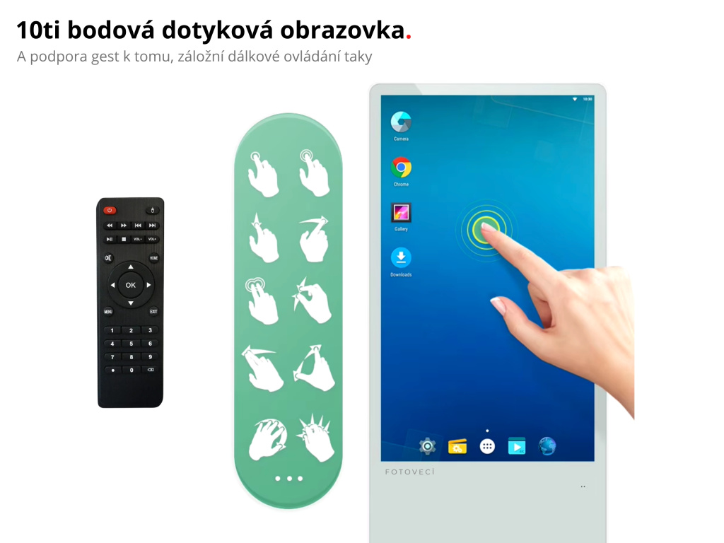 - Dotyková obrazovka, podpora Mutiple points touch / IR Touch