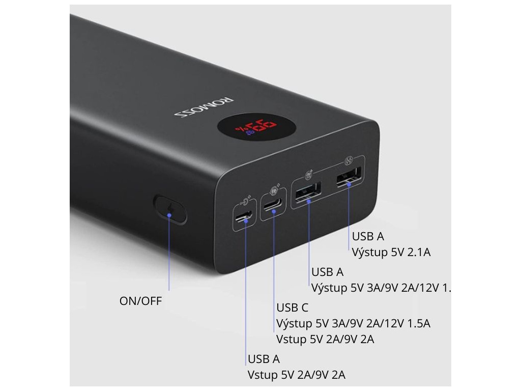 ROMOSS Powerbanka 40000mAh 22,5W Fast Charge Superfast Power Banka Externí Nabíječka