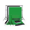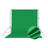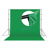Výhodný ateliérový set - konstrukce pro uchycení plátna s rozměry 3x2,6m + 3 barevné varianty plátna - bílé, černé a zelené (green screen) s rozměry 3x3m. Pozadí jsou vyrobena z polyesteru a jemné bavlny pohlcující odlesky a jsou určená k pravidelnému užití (nejsou pouze jednorázová). Plátna mají tzv. tunel, lze tedy natáhnout na tyč konstrukce.