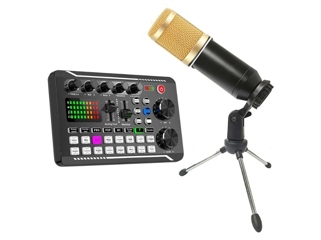 Sada Kondenzátorový Mikrofon + Bluetooth Zvuková Karta