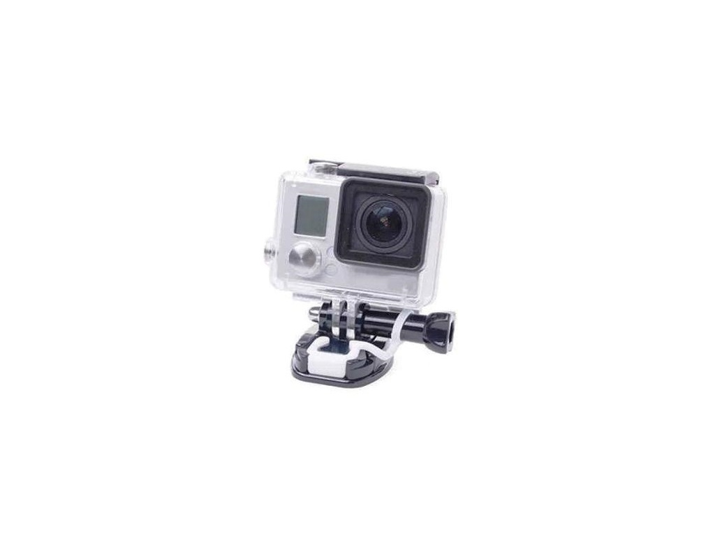 Táto upínacia spona slúži na uchytenie GoPro kamery alebo iné športové kamery s podobným úchytom. Spona sa pripne do oblých alebo rovných sánok. Kamera sa nakoniec prichytí pomocou špeciálneho skrutka k tejto spone. K baleniu tiež dostanete gumovú poistku, ktorú pripevníte do spony a na skrutku. Uchytávacia skrutka nie je súčasťou.
