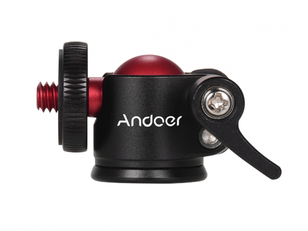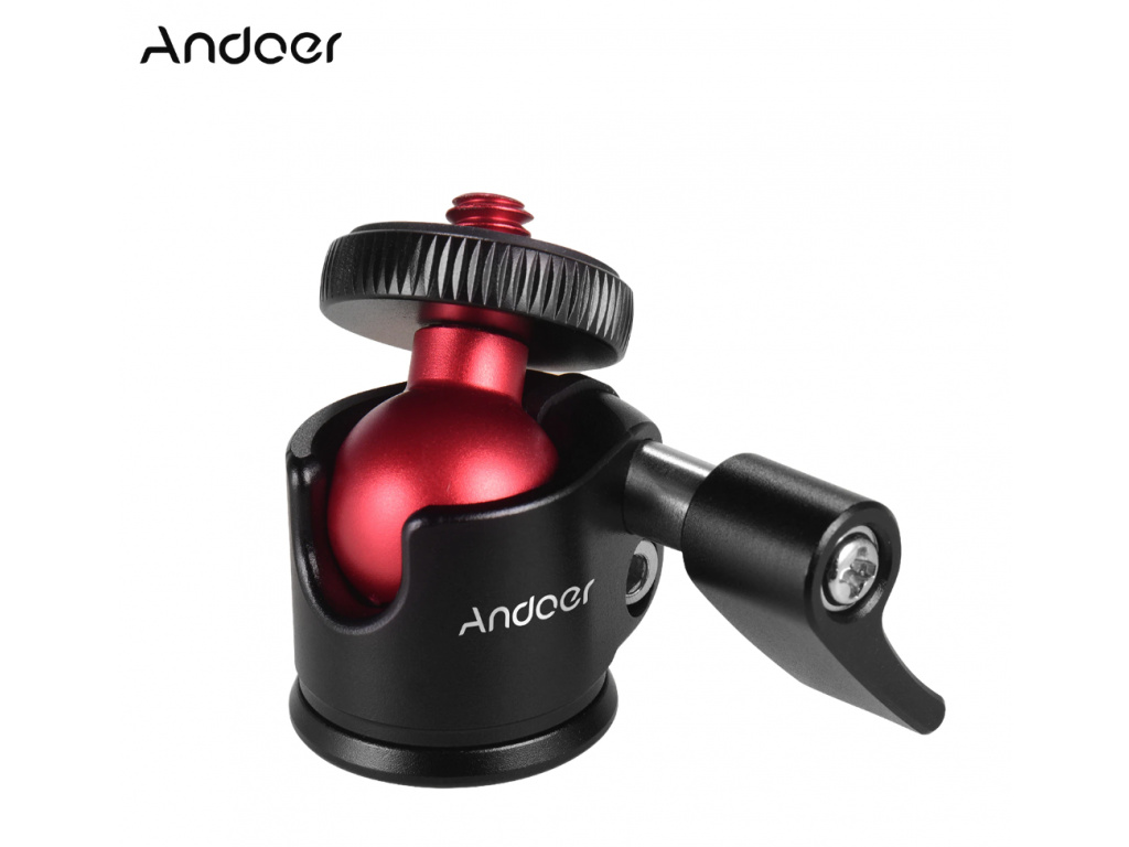 Andoer Tripod Guľová statívová hlava je unikátna spojka vhodná ku všetkým statívom či foto ringom. Je skvelým pomocníkom ako pre fotenie, tak natáčanie videí, stačí ju len namontovať na statív a na 1/4" závit, skrutka pripevniť váš fotoaparát. Fotenie sa tak stane neuveriteľne flexibilné. Guľová hlava môže mať až 90° vertikálny náklon a 360° horizontálne náklon, je navyše vyrobená z pevného hliníka a unesie aj ťažké zrkadlovky.Výhodou môže byť pripevnenie k light ringu, svetlo si potom môžete nasmerovať podľa potrieb.