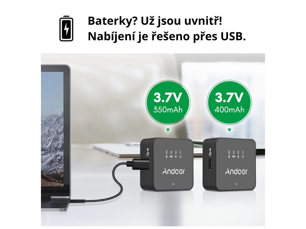 Bezdrôtový mikrofón môže dosiahnuť prenosovú vzdialenosť v ideálnych podmienkach až 30 m. Mikrofóny (TX) vydržia v prevádzke až 3,5 hodiny, prijímač (RX) až 5 hodín. Mikrofóny aj prijímač sa nabíja cez kábel USB C, ktorý je súčasťou balenia.