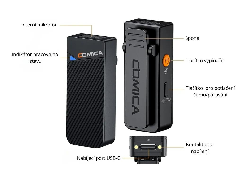 Comica Vimo C1 Profesionálny Bezdrôtový Mikrofón Audio pre Smartphone, Kameru, Počítač