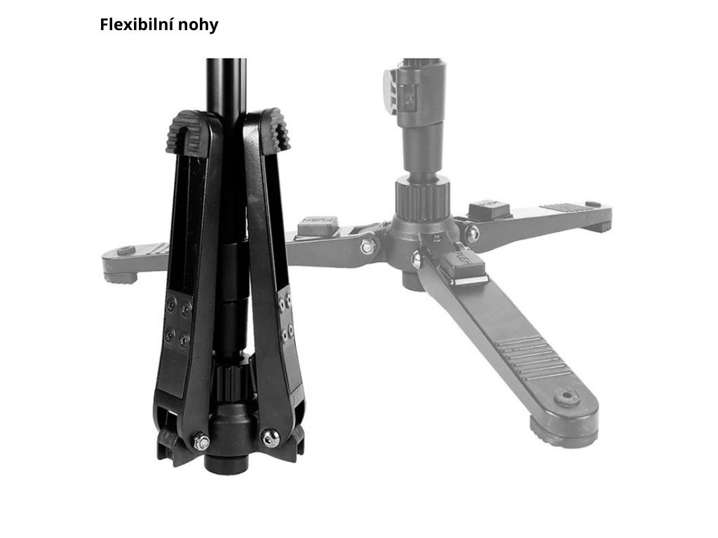 Konce nožičiek sú pogumované a je možné ich nastaviť aj do tzv. placatej pozície. Prednosťou statívu je jeho hlava, ktorá je otočná o 360° horizontálne a o 180° vertikálne.