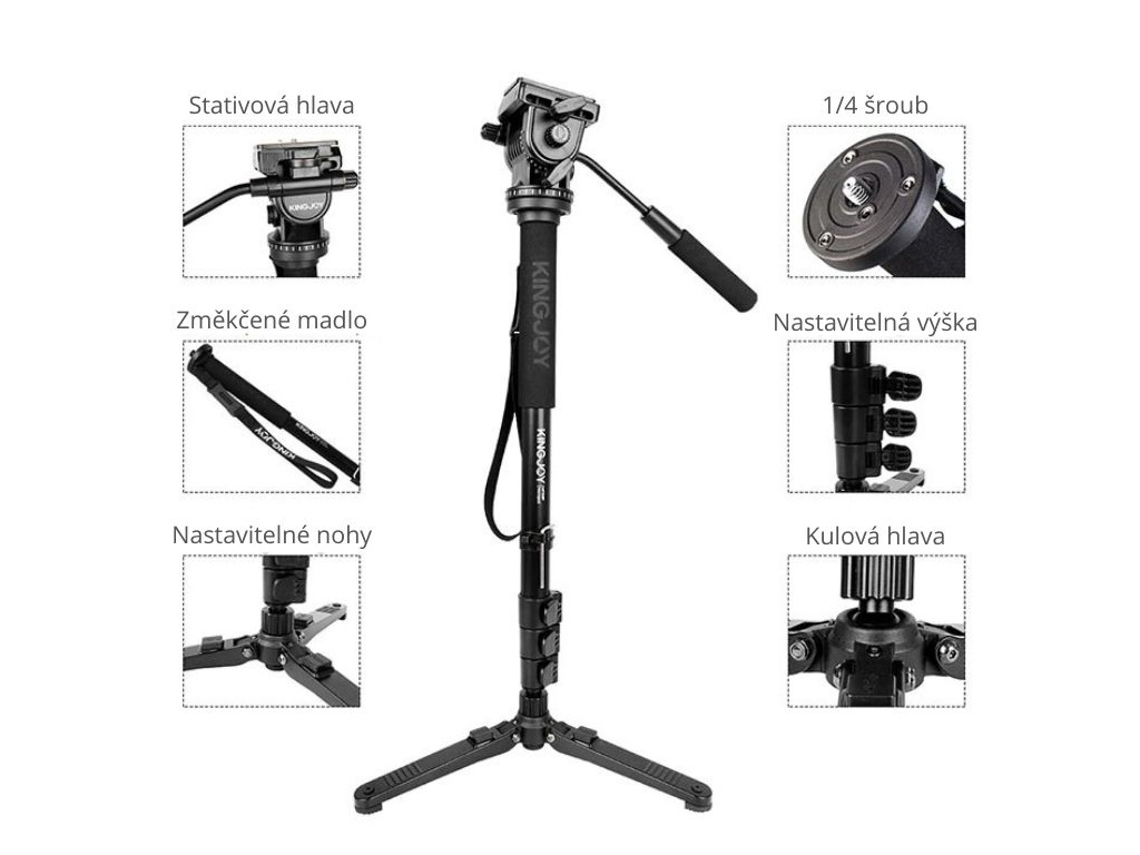 Kingjoy 2v1 Tripod Monopod Statív 170cm, Nosnosť 8kg