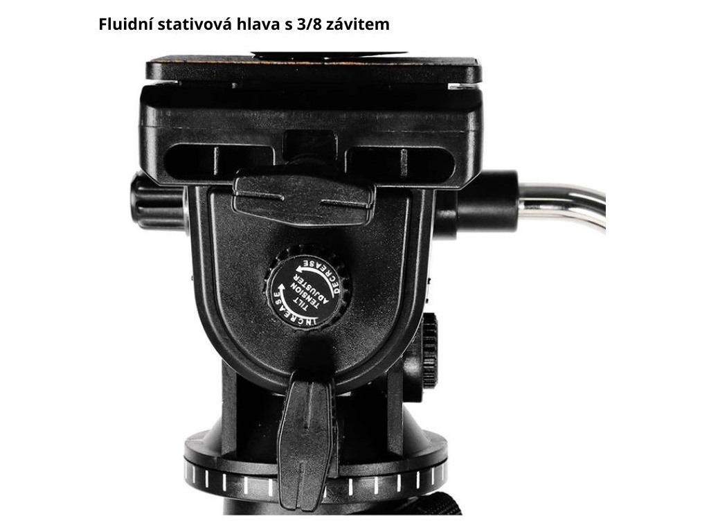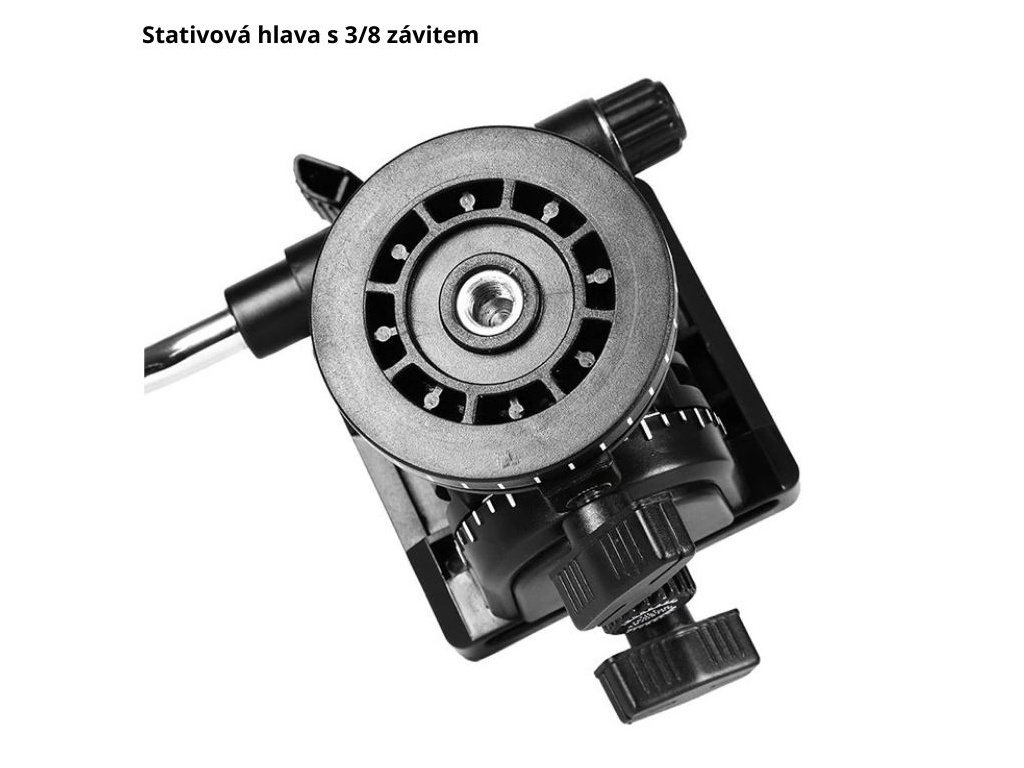 Pripevniť naň môžete aj držiak na telefón (nie je súčasťou balenia). Fluidná statívová hlava je možné z tyče odmontovať a na tyč môžete pripevniť zariadenie prispôsobené na 3/8 skrutku.