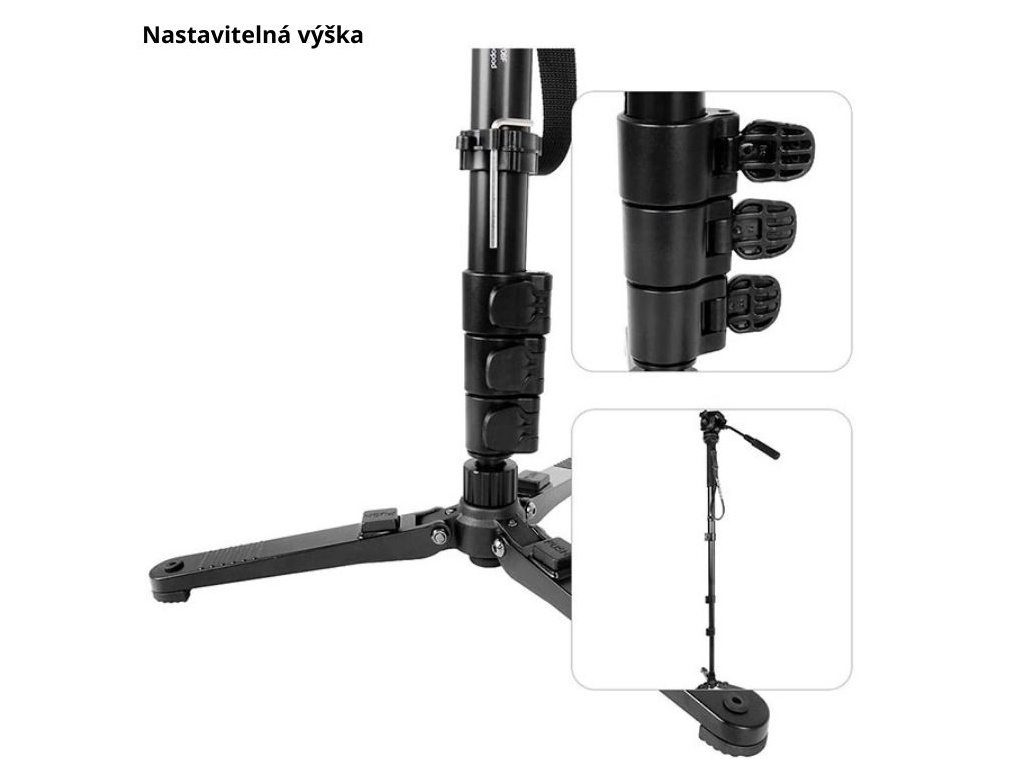 Profesionálny fotografický statív preverenej značky Kingjoy dosahuje výšku až skvelých 170cm. Tripod je vyrobený z vysoko kvalitnej hliníkovej zliatiny, je ľahký, ale odolný a jeho nosnosť je až 8kg.