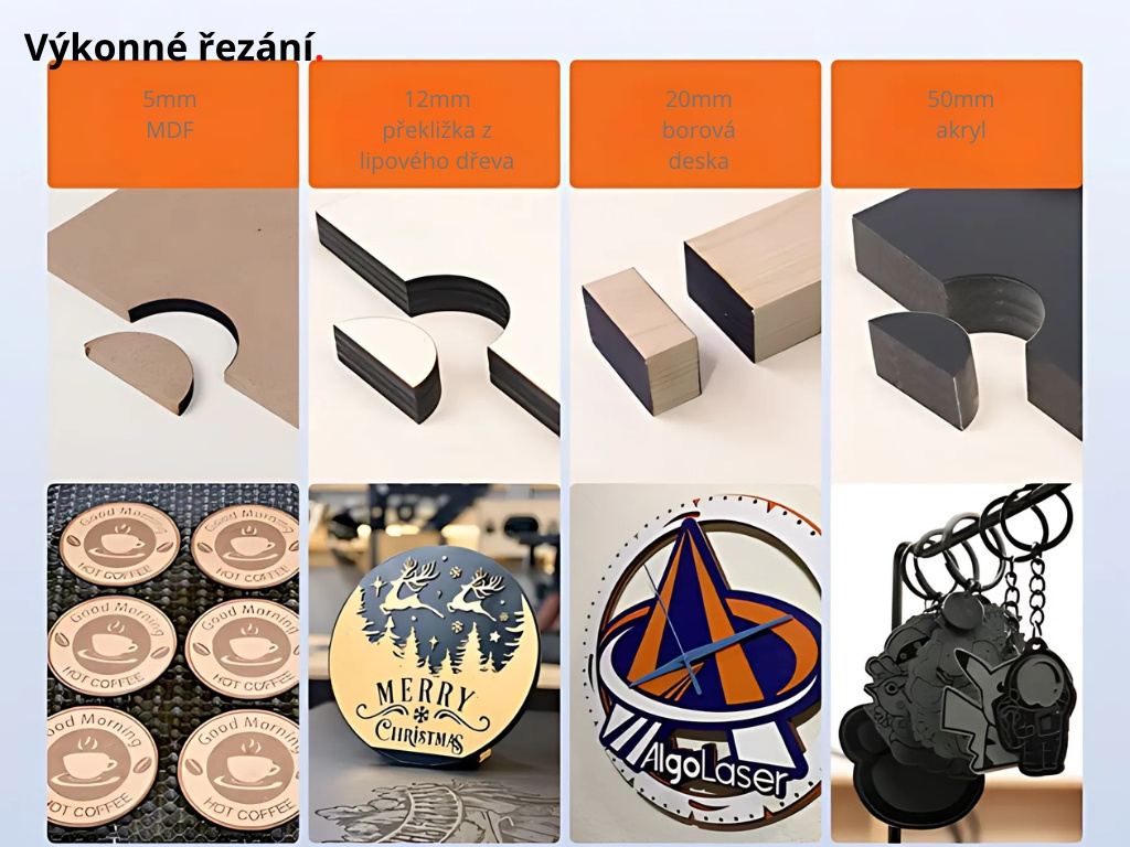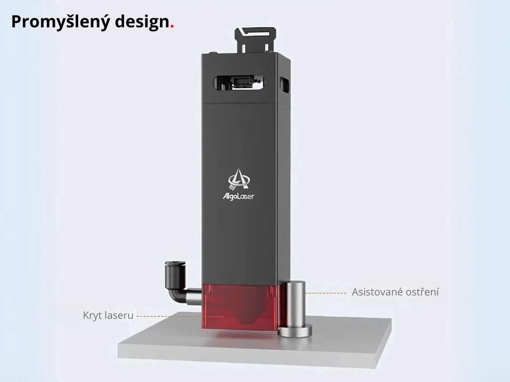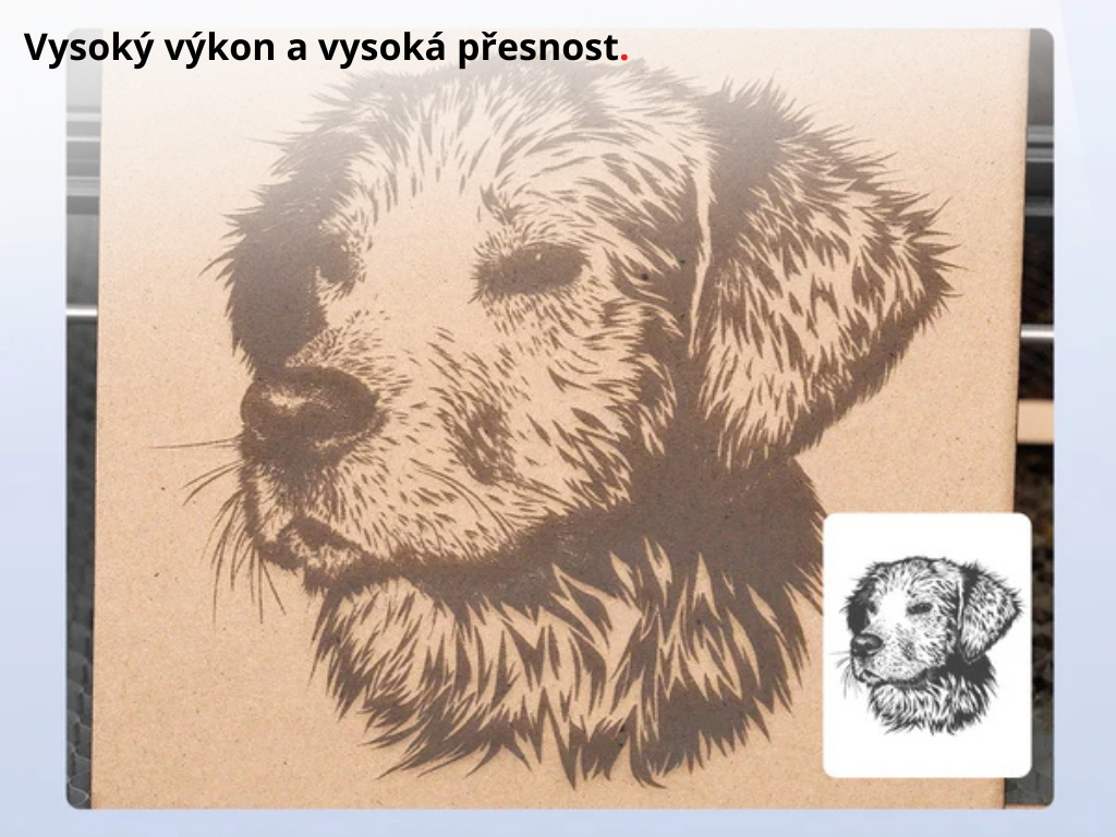 Výkonná laserová hlava je ideálna na gravírovanie vysoko presných vzorov pre náročných užívateľov. Zvládne gravírovanie do najrôznejších materiálov – cez drevo a kovy až po sklo. Disponuje ochranným štítom, ktorý účinne znižuje namáhanie očí spôsobené laserom, napriek tomu prosím používajte aj ochranné okuliare.