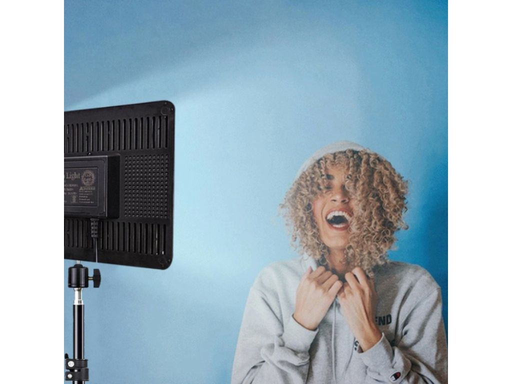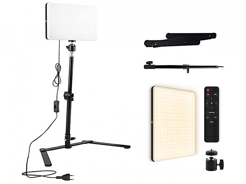 Statív je výškovo nastaviteľný a jeho maximálna výška je až 44 cm. Zároveň je možné statív natáčať až o 90 ° vďaka ohybnému kĺbu. LED panel je tiež vybavený diaľkovým ovládačom a môžete si tak nastavovať intenzitu svetla alebo farebnú teplotu. Súčasťou balenia je aj guľová statívová hlava, vďaka ktorej môžete svetlo natočiť do požadovaného uhla. Maximálna nami nameraná svietivosť je skvelých 5500 luxov/0,5 m.
