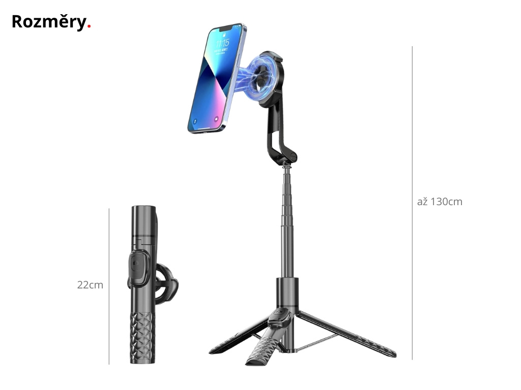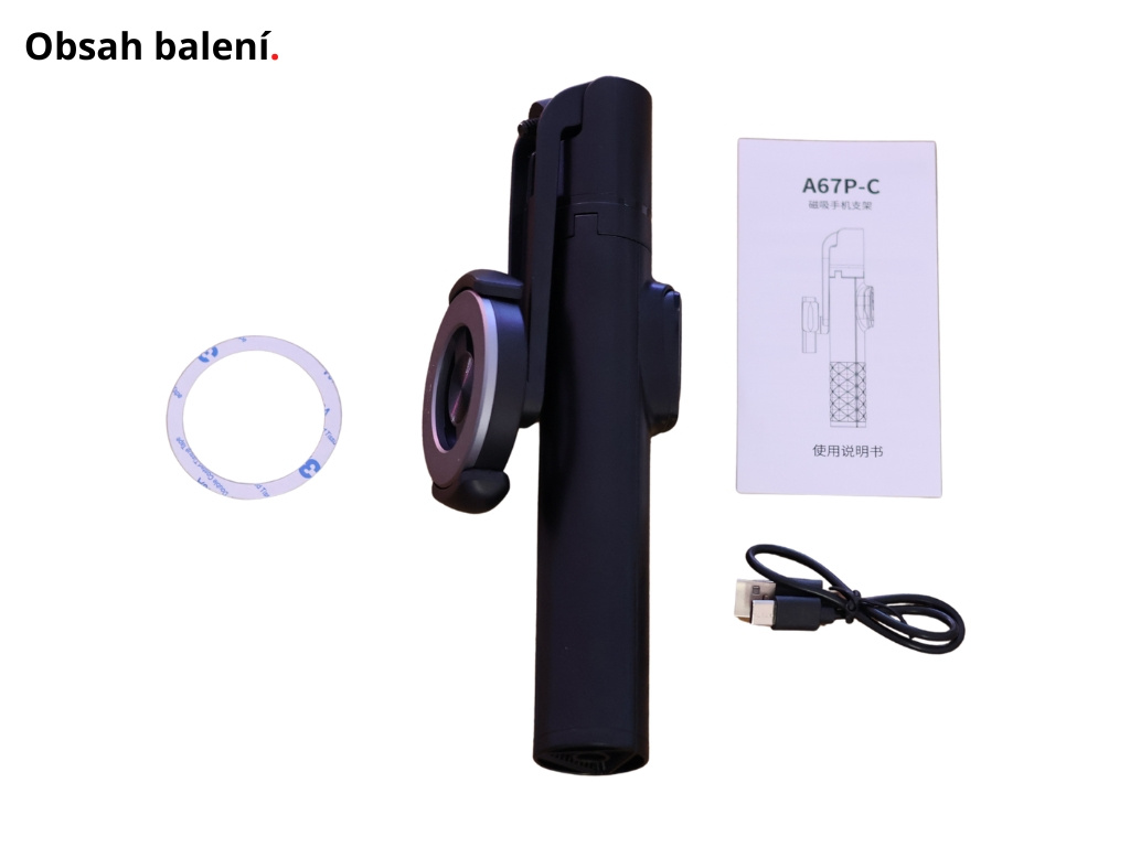 Súčasťou je aj univerzálny držiak pre telefóny bez magnetickej podpory a bezdrôtový ovládač. Je vhodný ako pre Android, tak aj pre iOS. Ovládanie s dosahom až 10 metrov ti umožní pohodlne fotiť a natáčať videá na diaľku bez nutnosti behať k mobilu a späť.