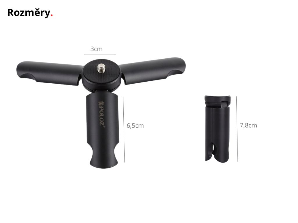 Mini statív je vyrobený z vysoko kvalitných syntetických materiálov s dôrazom na čo najnižšiu hmotnosť a výsledok naozaj prekvapí. Je to jeden z tých produktov, kde držíte niečo solidné a zároveň skoro nič nevážiace. Nožičky statívu sú opatrené protišmykovým materiálom, takže ani na šikmom alebo nerovnom povrchu vás nesklame.