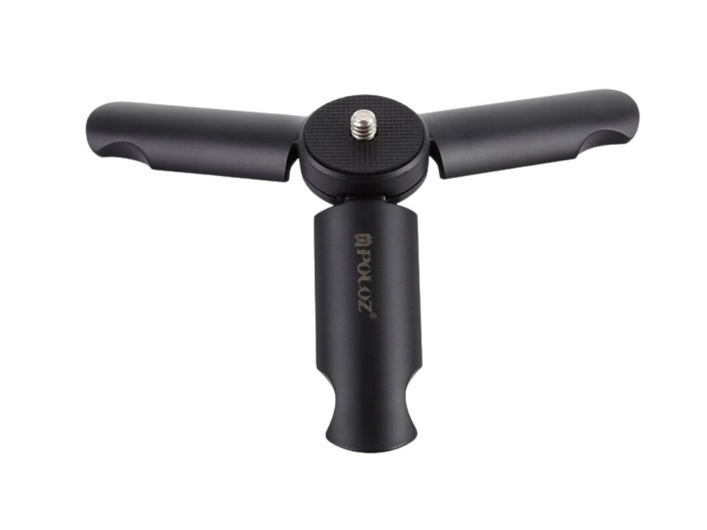 Malý statív, ktorý toho zvládne viac, než by sa na prvý pohľad zdalo.Je navrhnutý tak, aby spoľahlivo podoprel váš gimbal, kameru alebo telefón, či už ho postavíte na stôl, položíte na zem alebo vezmete pevne do ruky. Profilovaný držiak totiž neslúži len ako podstavec, ale zároveň tvorí pohodlný a bezpečný úchop priamo v teréne.