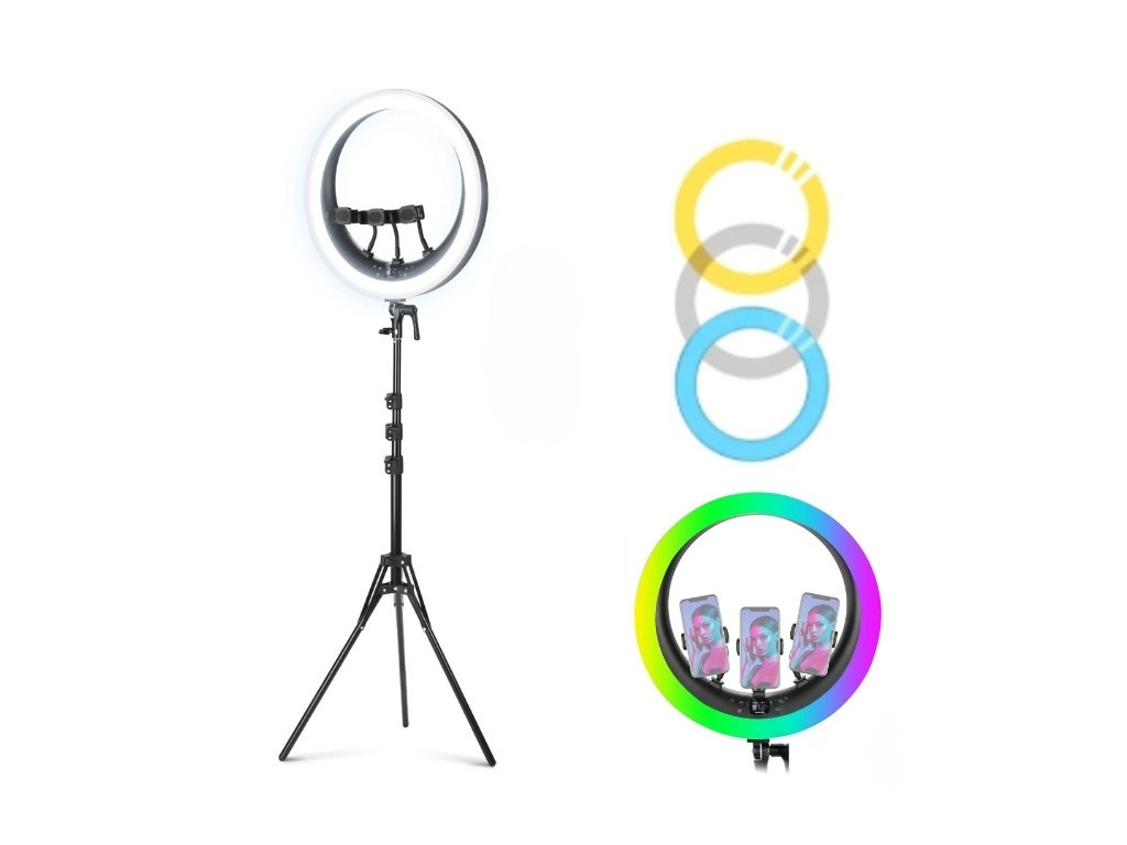 - Profesionálne kruhové svetlo s prirodzeným a rovnomerným osvetlením, ktoré zvýrazní farby aj pleť a zabezpečí čistý obraz pri natáčaní aj fotení.