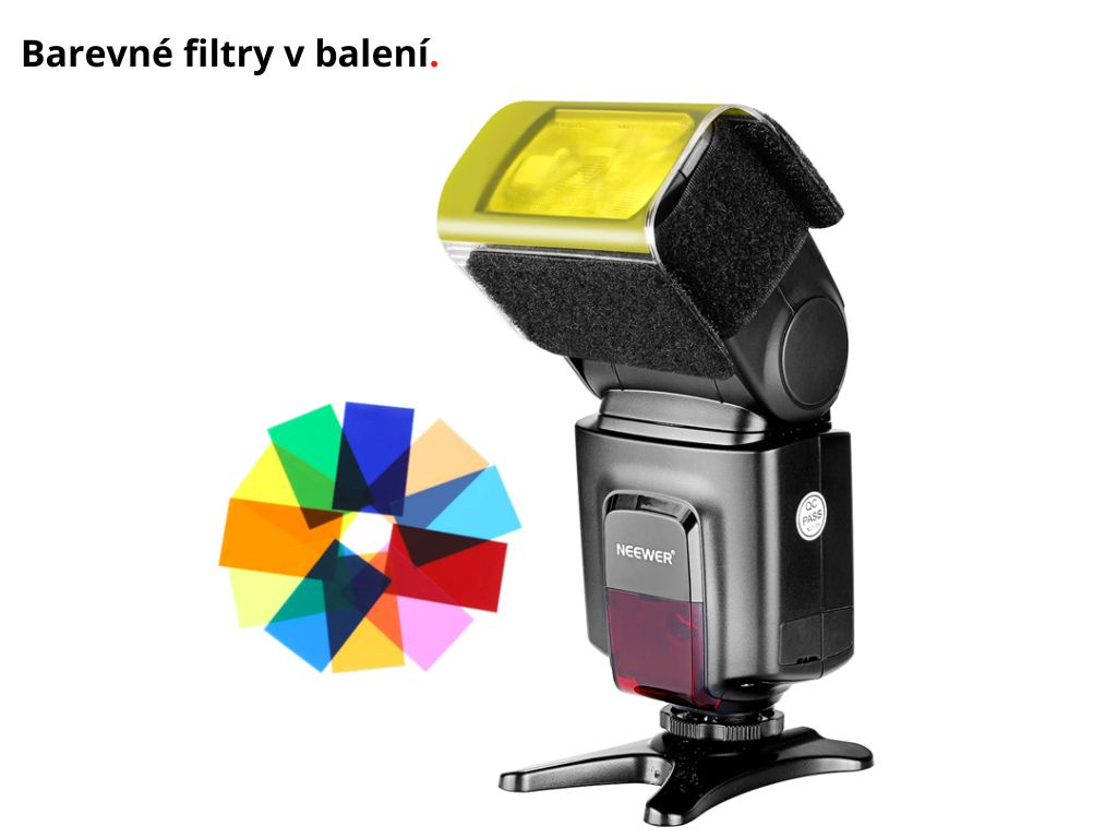 Neewer Externé Zábleskové Svetlo TT560 Univerzálny Blesk Diaľk. Ovládanie Farebné Filtre Difúzor