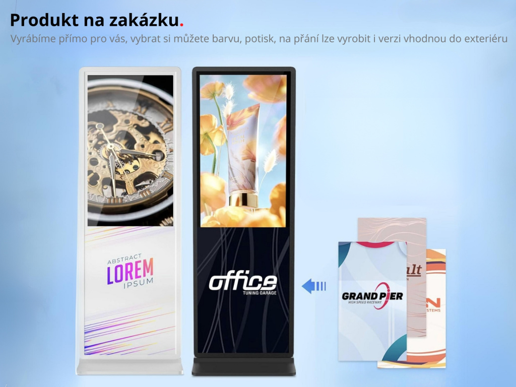 Skvele sa hodí pre showroomy, veľtrhy, gastronómiu aj vstupné priestory. Ale čo hlavne, tento model je určený do náročných vonkajších podmienok, odolá vetru, dažďu a slnečnému žiareniu a je schopný nepretržitej prevádzky. Dva integrované reproduktory a LED osvetlenie upútajú pozornosť úplne kdekoľvek.