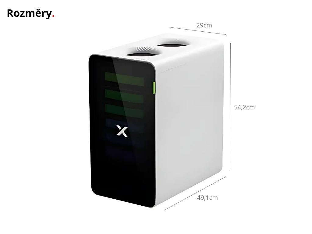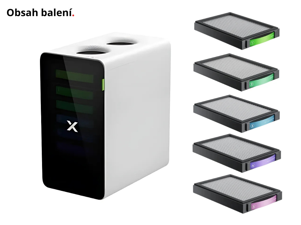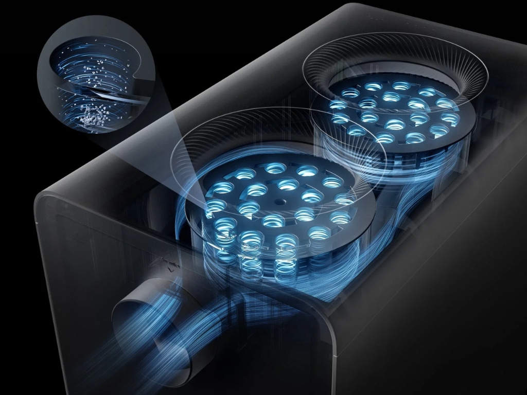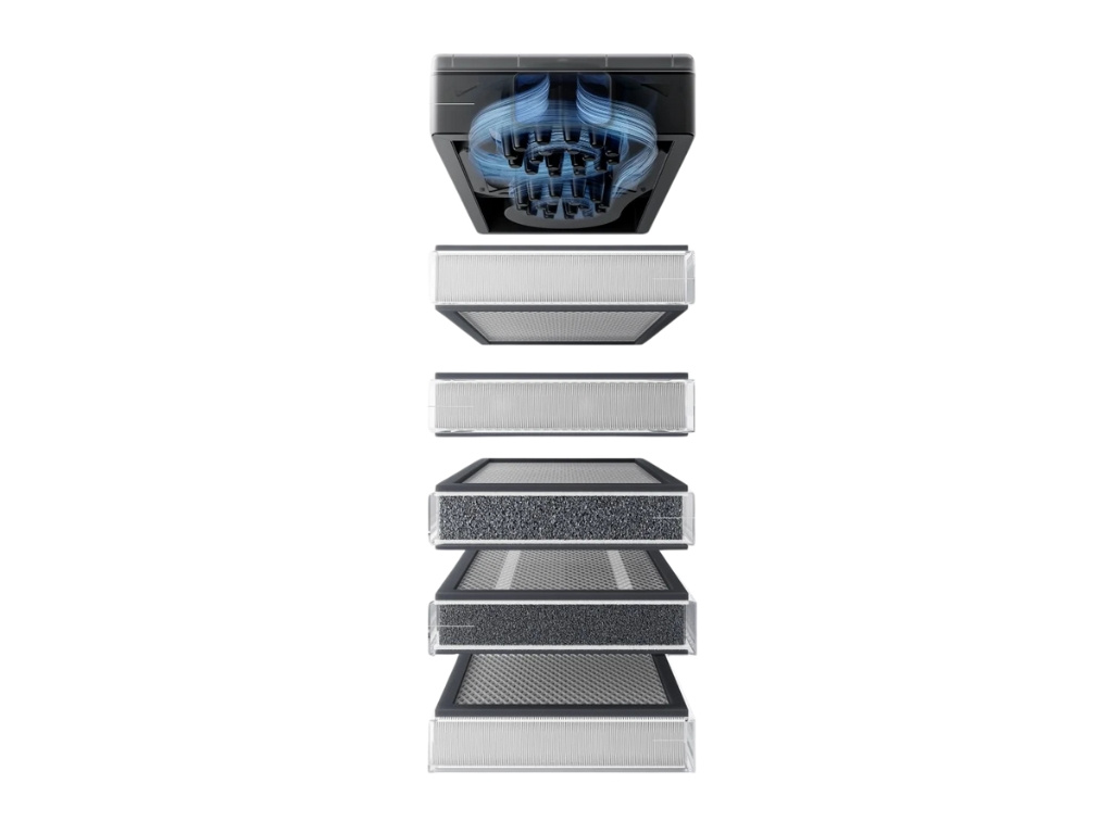 - Filtrácia: 6 filtrov (Filter SuperCyclone, Predfilter, Filter so strednou účinnosťou, Vrstva aktívneho uhlia, Ultra hustá uhlíková sieťovina, Vysoko účinný filter)