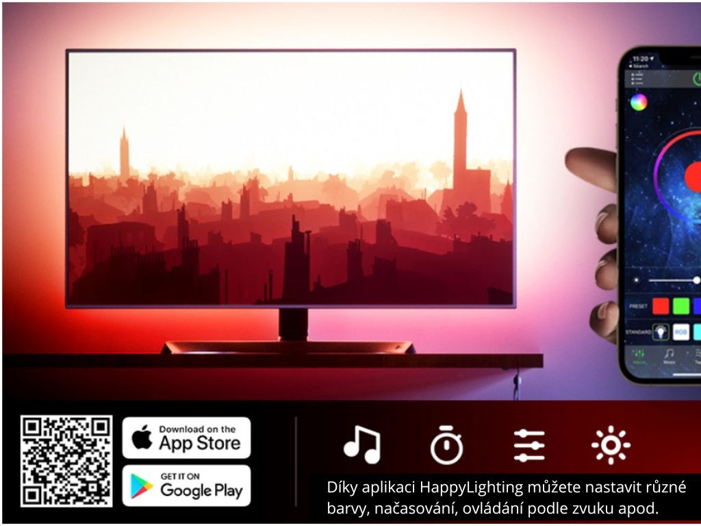 Možno ovládať cez aplikáciu v telefóne (HappyLighting), takže môže byť aj na zle dostupnom mieste a jeho dĺžka je 1-5m (podľa varianty). Je perfektný aj ako podsvietenie barov, obývacích stien, herných PC stolov, kuchynských liniek, podhľadov, ale môže byť vhodný aj napríklad do výkladu vo vašom obchode. Dodá biele steny úplne inú atmosféru.