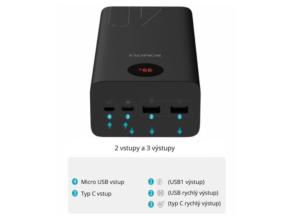 ROMOSS Powerbanka 40000mAh 22,5W Fast Charge Superfast Power Banka Externá Nabíjačka