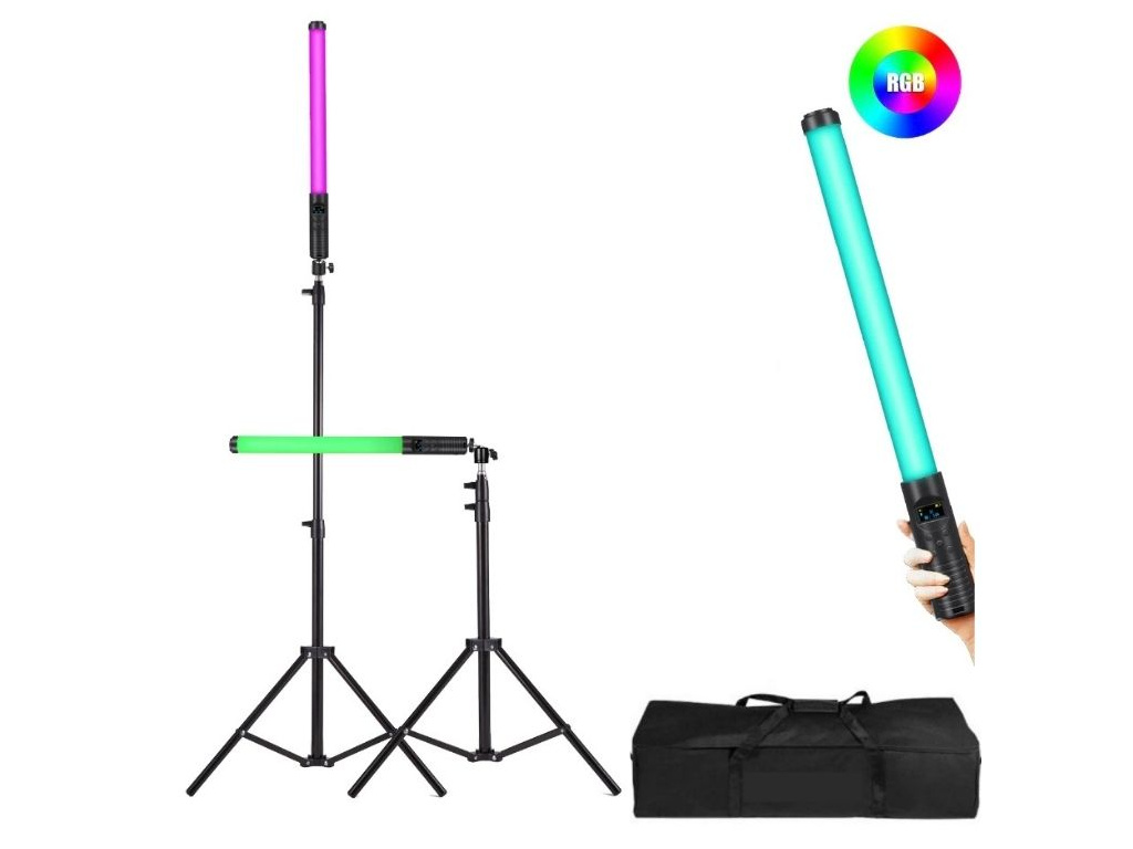 Výhodný set dvoch RGB svetelných tyčí je vrátane dvoch statívov, ktoré dosahujú až do výšky 200cm. Súčasťou sú aj dve guľové statívové hlavy, vďaka ktorým dostanete svetlo do požadovaného uhla. Celý set si potom môžete pohodlne prenášať v taške.